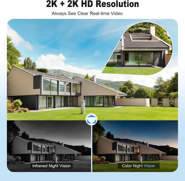 2K Ultra HD Picture Color Night Vision Our 2K solar security cameras is equipped with a high-performance image sensor, presenting 2K ultra HD resolution. Whether in the daylight or in the dim light at night, it can accurately capture the features of people and objects. It is equipped with powerful infrared and color night vision modes to present natural-color images. The infrared night vision mode can monitor clearly even in the absence of light, always safeguarding family safety and not missing any suspicious situations.