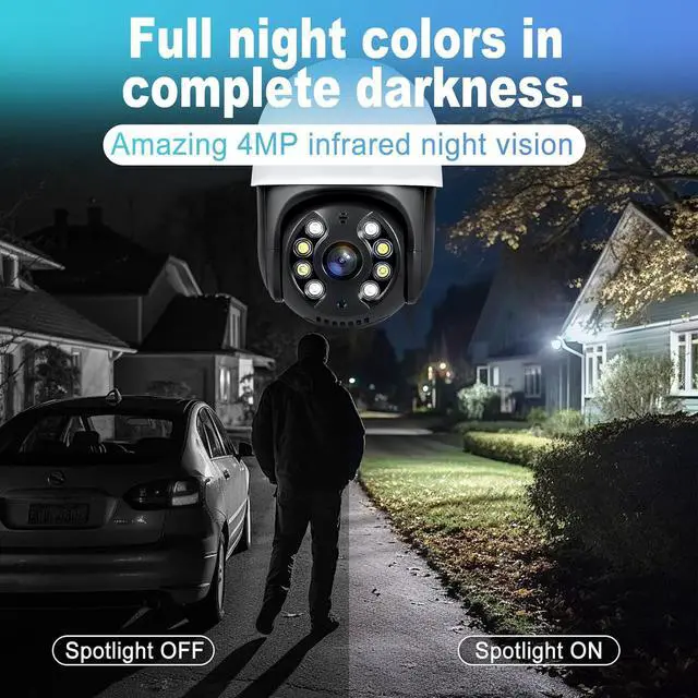 4MP Ultra-High Definition Resolution Our security cameras features 4MP ultra-high definition picture quality and can capture clear ultra-high definition videos. Whether it's day or night, advanced image processing algorithms can effectively reduce noise and blurring, making every detail clearly visible. This helps you keep track of changes in your surrounding environment and monitor it in real time for uninterrupted 24/7 monitoring.