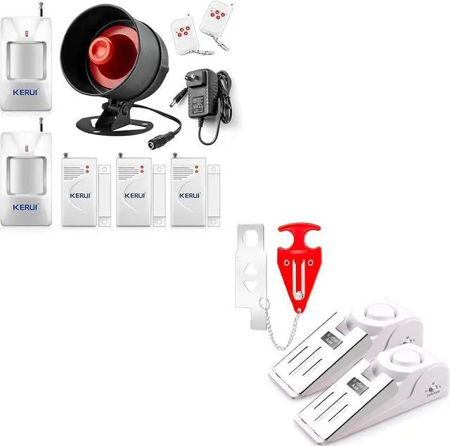 Complete DIY wireless house burglar alarm system kits includes a horn and three window/door sensors,two remote controls,two pir motion detectors, loud alarming to protect well for apartment shed hotel garage RV motor home safety ,affordable home security.