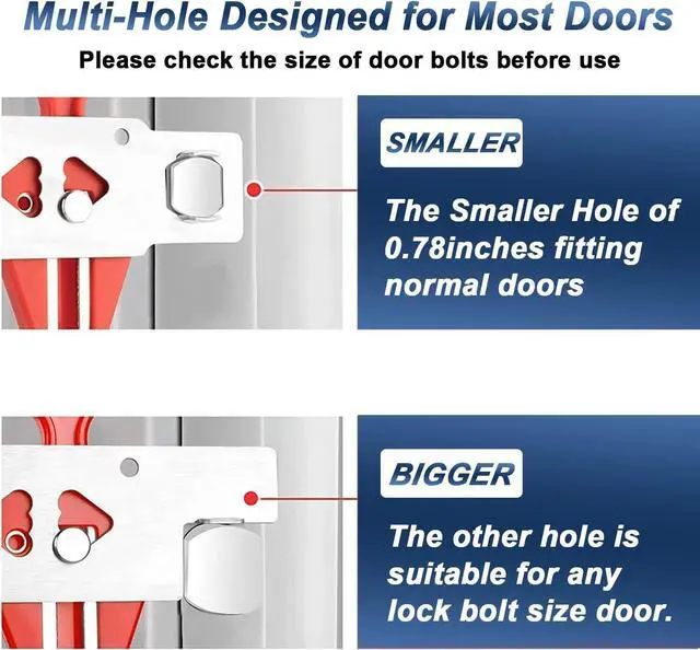Easy to Install-Each door stop alarm is powered by a 9V battery (not included). No need to use tools to install, just simply place the stopper under door (For inward-opening doors only). The gap between the door and the floor should be 10mm (0.39 inch) to 35mm (1.38 inch). About the door lock, just need to insert it into the door hole on the side.