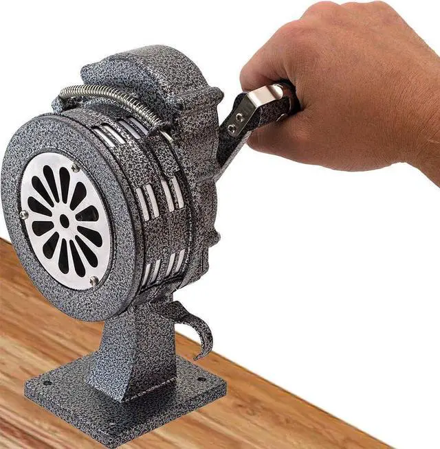 EASY INSTALLATION AND USAGE - This manual siren comes with a base mount, enabling it to attach securely to a steady solid surface like a table. When attached, the base holds the siren steady and secured. This hand operated siren is super easy to crank, which also makes it a fun instrument.