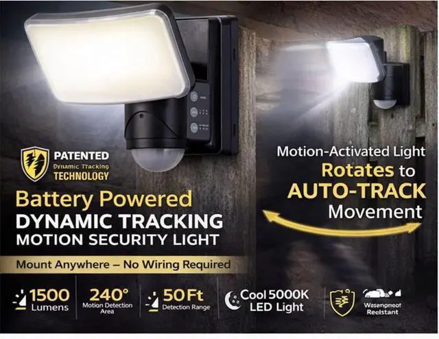PATENTED DYNAMIC TRACKING TECHNOLOGY: Light head physically rotates to follow detected motion, keeping people and vehicles illuminated longer for enhanced security and deterrence.