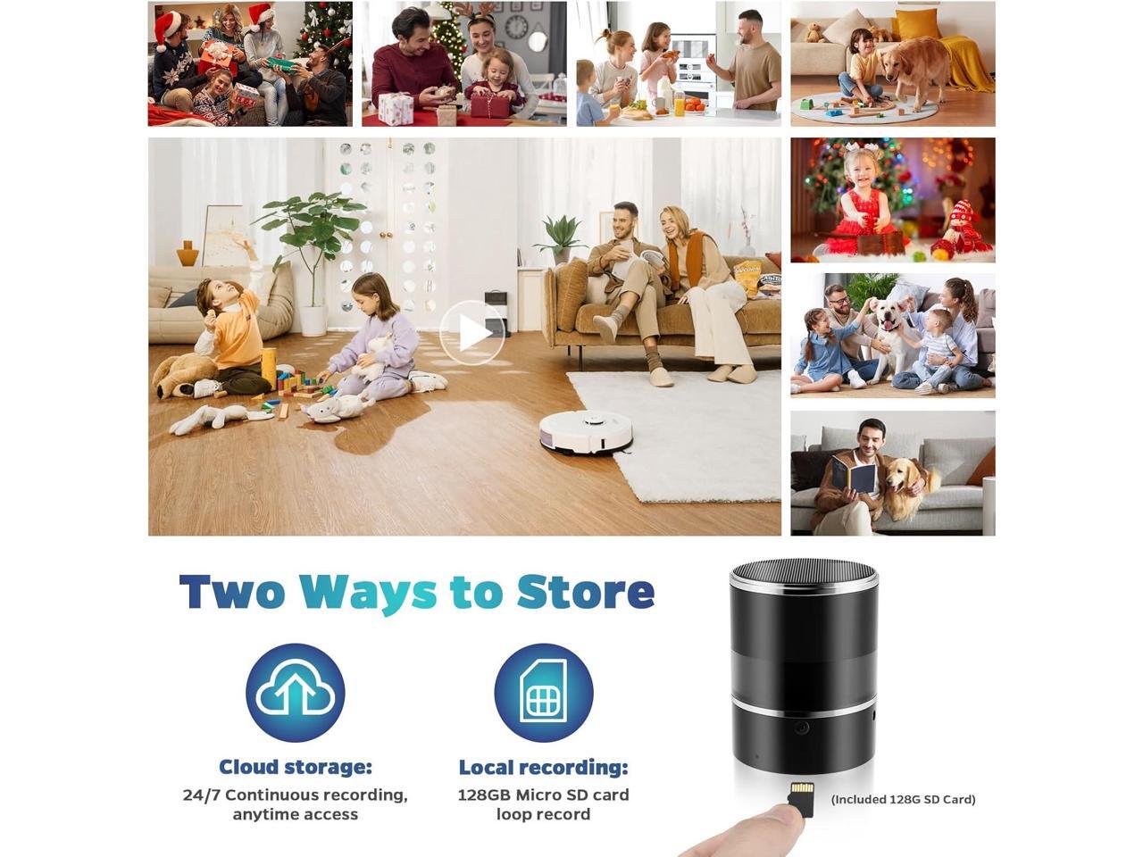 Security Camera with Bluetooth Speaker, 1080P Wireless WiFi Camera for Home/ Office/ Baby/ Pet, Indoor Camera with Motion Detection, Night Vision, APP, Local & Cloud Storage (Included 128G SD Card)
