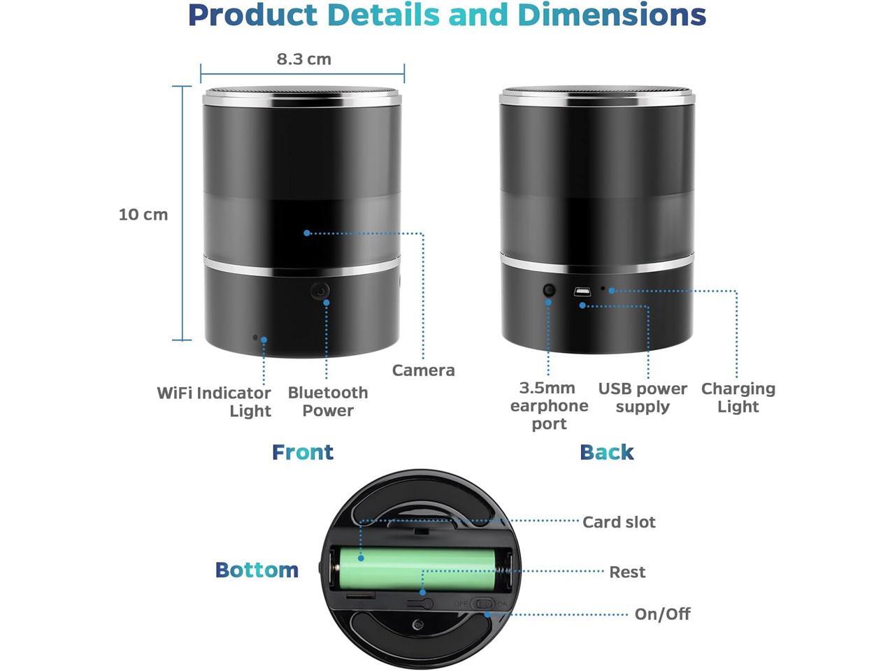 - Bluetooth Speaker CameraThis device combines the functions of a security camera and a Bluetooth speaker. It's not just a high-quality camera, but also doubles as a convenient speaker, allowing you to wirelessly play your favorite music to relax. With no wiring or professional installation required, it's perfect for monitoring your home, pets, or office space