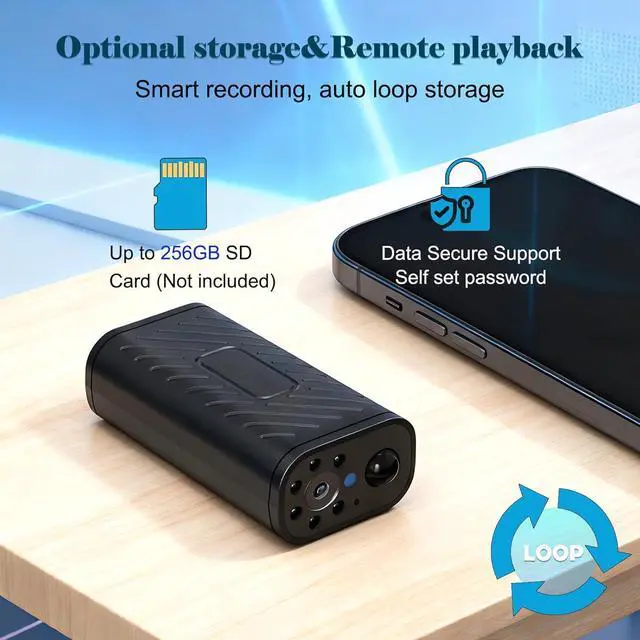 [Two-way Talk & Encrypted Storage and Remote playback anytime] Upgrade your home security with the PNZEO WiFi Smart camera, designed for effortless two-way talk using its built-in mic and speaker. Keep in touch with your baby, pets, and family via phone app, wherever you are. This camera offers supports Micro SD Card (up to 256GB, not included) loop record. It provides two recording modes: 24/7 video record and PIR motion detection trigger records, ensuring you never miss any important moment. With advanced encryption, your data stays private and secure.