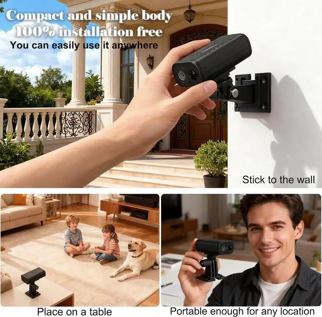 [Ultra-Compact body & Excellent weather resistance] Its compact size and srylish appearance, combined with IP66 weather resistant, make it easy to integrate into various home or office environments. Whether it is Home monitoring office corners, store shelves, damp spaces, or outdoor rainy days, it can be easily deployed, making 24/7 safety monitoring accessible in the most elegant and convenient way. The installation method is also very simple, as long as the bracket is in place, your camera can be removed or installed at will.