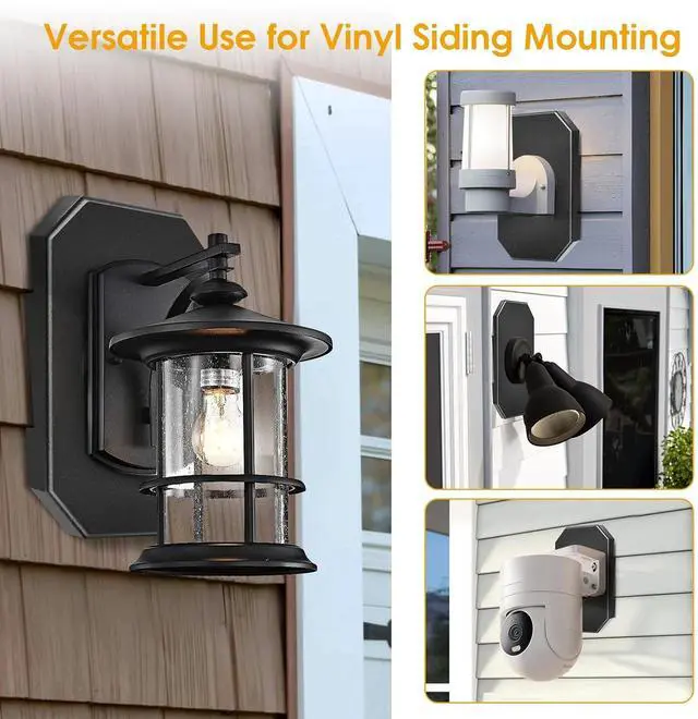 Secure & Professional Fit for 1/2" Lap Siding Specifically designed for double 1/2" vinyl siding, ensuring a flush, weather-resistant installation for outdoor lights, cameras, and more.