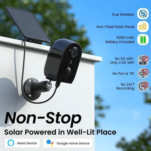 1Multi-Scenario Usage2Real Time Siren3Weather Resistance4Dual-Charging Methords5Local and Cloud Storage1What's in the Box2Easy to Install3Viewing Angle Does this security camera support 5G wifi connection?