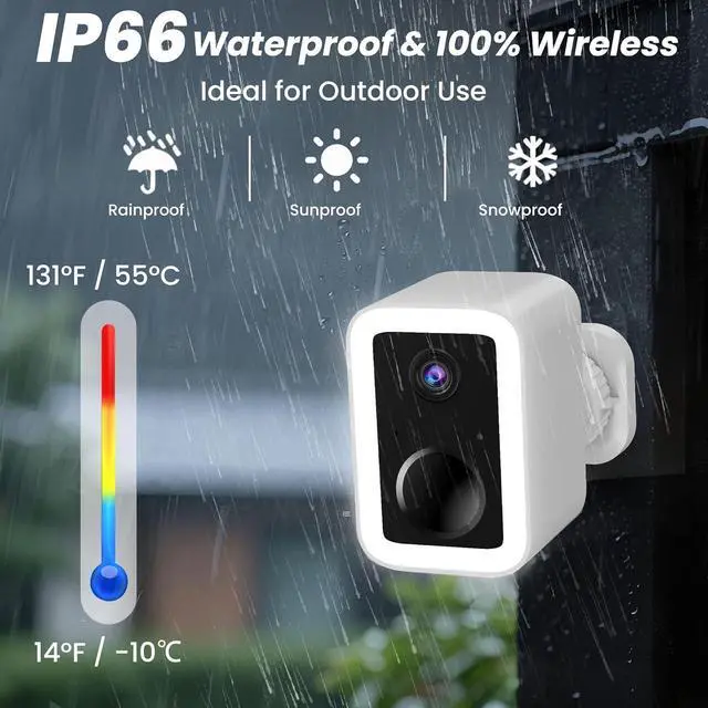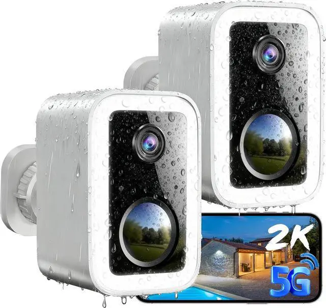 2 Packs- Wireless Security Cameras2-pack of wireless security cameras, completing your home security system. 2K 3MP Super HD & full color night vision. Upgraded integrated spotlight and siren. Free cloud storage. Support for 5G & 2.4G Wi-Fi. Long-lasting battery, IP66 waterproof & weatherproof.