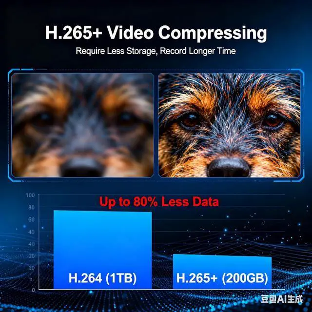 Advanced H.265+ Compression for Maximum Storage Utilize next-generation H.265+ video compression technology, which drastically reduces file sizes without compromising video quality. This smart efficiency allows you to store more recorded footage for longer periods, saving valuable hard drive space and costs.