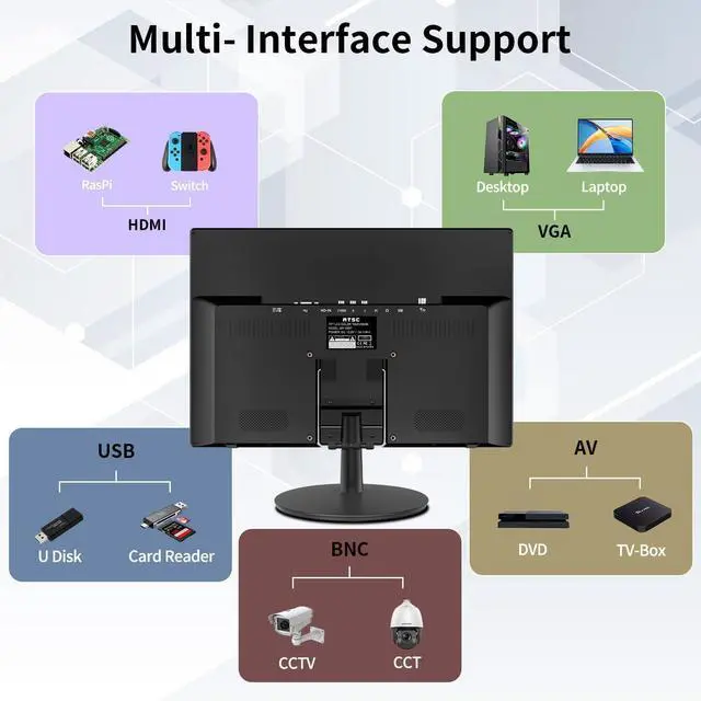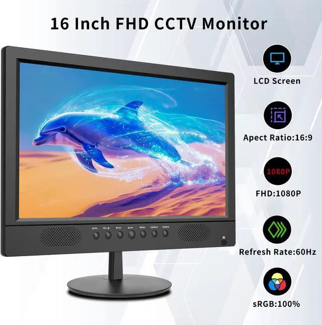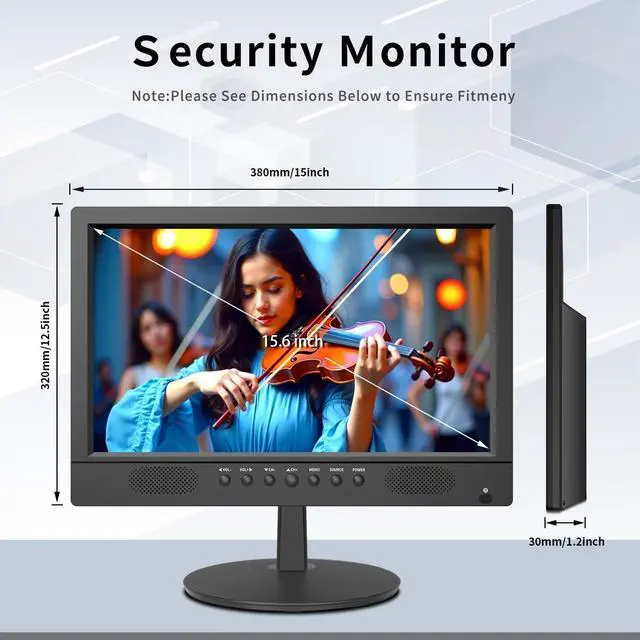 Product Description Size: 15.6inch Provide a variety of high-quality, exquisite appearance, and reasonable price security products. The ergonomic tilt and rotation design makes the workplace more efficient, more efficient and safer. Desktop brackets and standard MESA wall-mounted holes are used for desktop and wall-mounted installation. Our security monitor is designed with a VGA video input connector, so the camera can be directly connected to our monitor without going through the DVR first. The fast response time of 5 milliseconds avoids fuzzy motion monitoring and feed delays at critical moments.The built-in speaker saves the cost of additional audio hardware and is used for audio warning notifications. User-friendly front button operation. This is a 15.6-inch LED HD video monitor. specification, Size: 15.6-inch LED CCTV monitor Aspect ratio: 16:9 Resolution (H x V): HD 1600 x 900 Color: 16.7M Viewing angle: H: 178° V: 178° Contrast ratio: 1000:1 (DCR) Response time: 5ms Brightness: 200cd/m2 Speakers: 2 each (5 watts) HDMI input: HDMIx1, high-definition resolution VGA input: VGAx1, up to 1920x1080 resolution Audio input: Stereo PC Automatic adjustment: yes Wall mount: VESA standard,VESA size: 100x100mm OSD languages: English, French, Spanish and Chinese Power supply: AC110~240V, 50/60Hz Power consumption: <25W Working temperature: 32° F ~ 104° F Safety: FCC, CE, CB, RoHS What's in the box? Security monitor x1; power cord; wall mount; user guide.