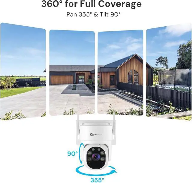 360° Pan & Tilt for Full Coverage: Designed for comprehensive home security, each outdoor wireless solar camera can be remotely controlled with 355° horizontal and 90° vertical rotationeliminating blind spots and ensuring full protection for your family and property. The four PTZ cameras can be viewed simultaneously on one screen, giving you flexible viewing angles to monitor porches, yards, and driveways without missing a single corner