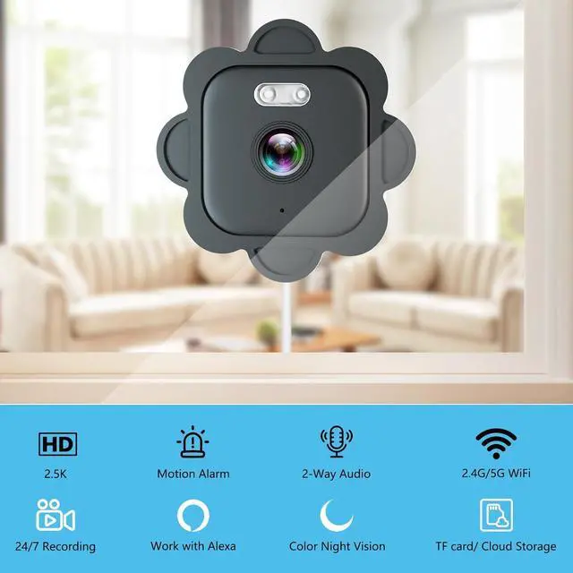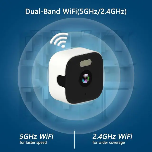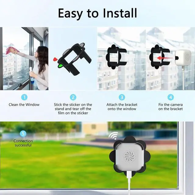 Dual-band WiFiOur indoor window camera supports 2.4ghz and 5ghz WiFi , strong anti-interference ability, good wall penetration, and more stable and powerful signal transmission(2.4g wifi for wider coverage, 5ghz wifi for faster speed)