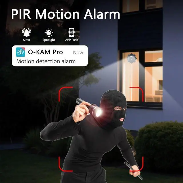 2.5K HD & Color Night VisionThe window security camera provides 4MP HD pictures and videos. Multiple night vision modes to choose (infrared, color), built-in CMOS sensor and IR light can auto sense light changes in the surrounding environment and switch to color night vision mode, display ultra clear images even at a distance of 33 feet. Provides you with ultra-high-definition color images regardless of day or night