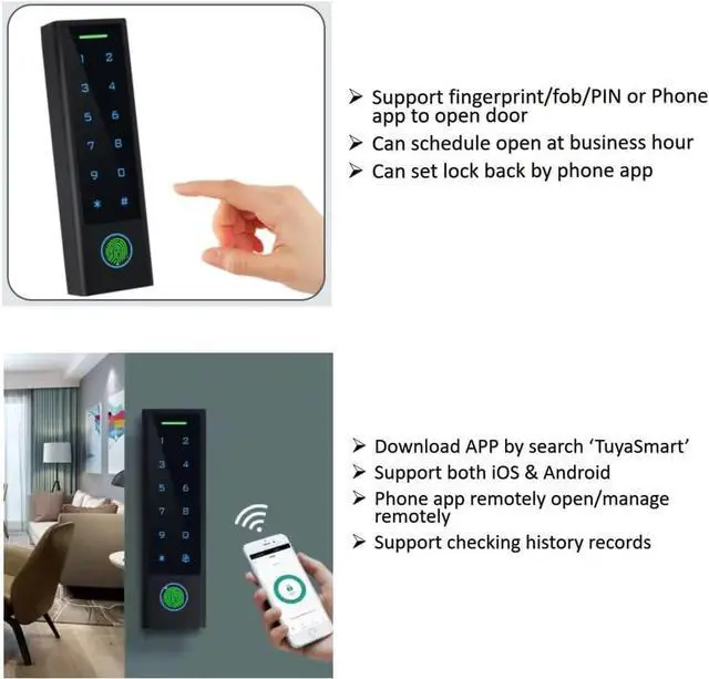 Multiple Access Modes: Fingerprint,Smartphone APP, Card, PIN Code