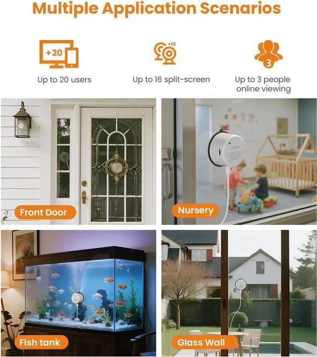 [Dual-band Stable Connection & 24/7 Recording] This indoor camera supports the latest WiFi technology and is compatible with both 2.4GHz & 5GHz networks, ensuring faster and more stable data transmission. It supports 24/7 continuous recording (requires an SD card or cloud service which sold separately), capturing everything that happens in front of the window. Whether you want to review daytime visitors or check for unusual activity at night, the complete video record provides reliable evidence.
