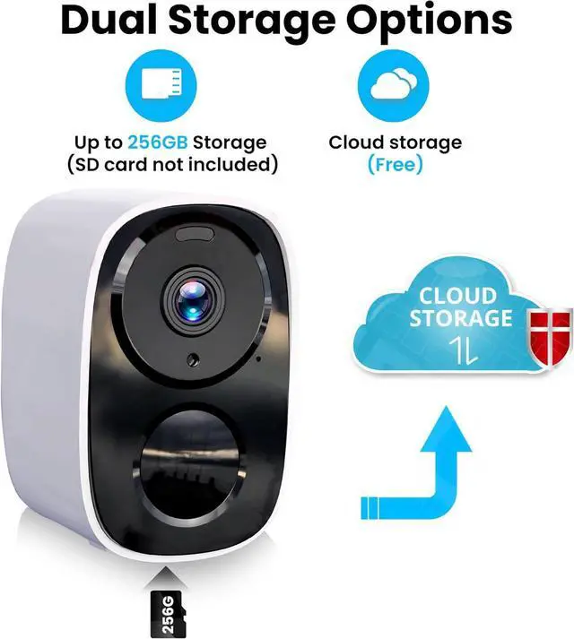 Free Cloud & Local Storage OptionsEnjoy 3-day free encrypted cloud storage with easy playback anytime via the appno subscription required. For added flexibility and data security, the outdoor camera wireless also supports local storage with a microSD card up to 256GB (not included), perfect for continuous high-resolution recording. Cloud recordings are saved in 720p to ensure faster upload and smoother access.