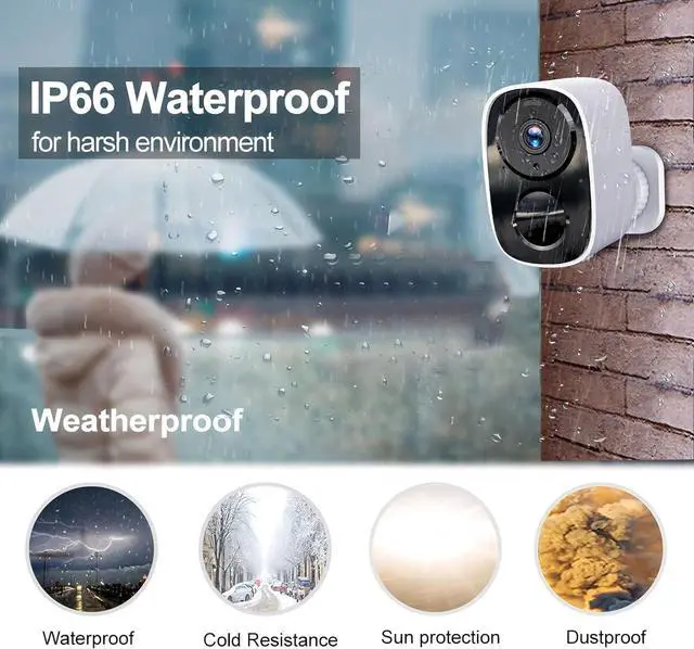 IP66 Waterproof & DustproofBuilt with an IP66-rated design, this camera withstands rain, wind, sand, and dust, providing reliable performance and protection in all weather conditions.