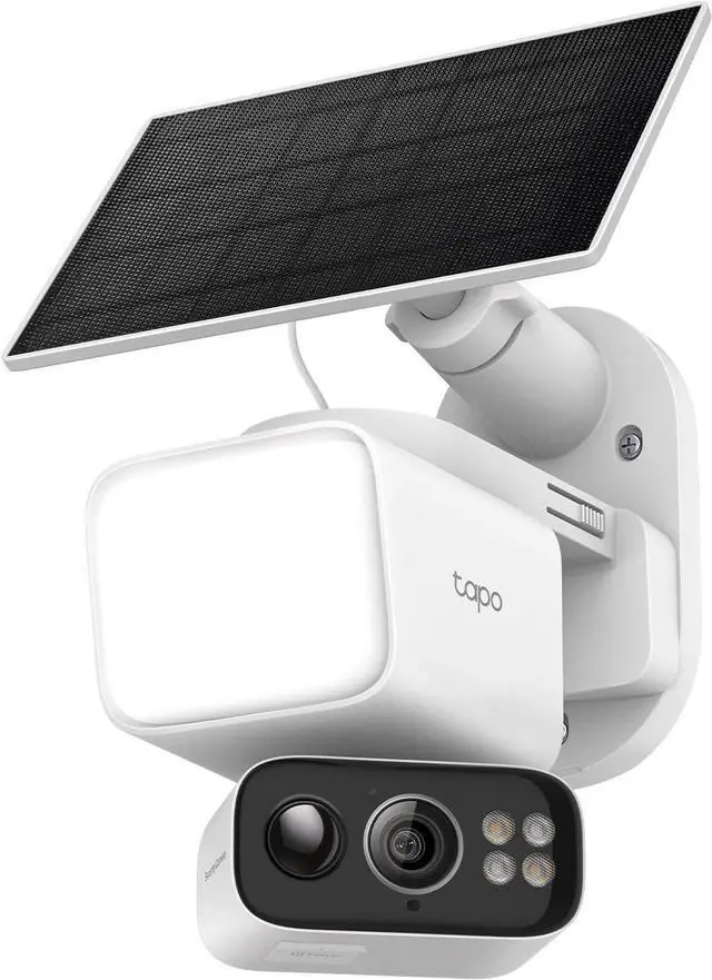 The Tapo C615F KIT is a solar-powered pan/tilt 2K outdoor security camera with an integrated 800-lumen floodlight that can be motion-activated or controlled through the Tapo App. Designed to provide clear visibility for garages, backyards, and front entrances, it combines two built-in spotlights and one main floodlight with a 4000 K color temperature for bright, full-color night vision. An IR night vision mode is also available for discreet, low-light monitoring. Powered by a built-in rechargeable battery paired with the included eco-friendly Tapo A201 solar panel, eliminating the need for wiring or frequent battery changes. The camera features an IP65 weather-resistant design and operates reliably in temperatures from 4 °F to 113 °F and humidity levels between 10% and 90% (non-condensing). The floodlight camera provides a 100° diagonal, 84° horizontal, and 44° vertical field of view, plus a mechanical pan/tilt range of 338° pan and 97° tilt for up to 360° horizontal and 130° vertical coverage. The floodlight itself can be manually adjusted 240° horizontally and 10° vertically. You can schedule automatic 360° scans for full panoramic coverage or patrol key points at set times, while the camera detects motion up to 32 feet away at its highest sensitivity. For active security, the C615F includes a built-in 97 dB siren and bright alarm lights that can be customized to trigger when motion is detected, helping deter unwanted visitors. It connects securely with WPA/WPA2-PSK protocols and is compatible with Tapo H500 and H200 hubs. Certified to CE, FCC, NCC, BSMI, JFT, VCCI, DOE, CEC, NTRA, KC, and RCM standards, the camera measures 5.23 × 3.22 × 6.34 inches and weighs about 1.5 lbs, while the included solar panel measures 6.82 × 4.74 × 0.61 inches and weighs about 0.37 lbs. The kit includes the Tapo C615F camera, Tapo A201 solar panel and bracket, base cover, USB charging and solar extension cables, mounting screws and anchors, template stickers, and a quick start guide. *Data based on the comparison between Tapo C615F KIT and Tapo C610 KIT in a laboratory environment. Actual illumination may vary based on environmental conditions. §45 min of sunlight time is based on standard environmental conditions (1000W/m2, 25°C, AM1.5) and specified working scenes (up to 100 events triggered per day). Actual required time of sunlight may vary. 140-day battery life is based on Tapo laboratory tests with 300 seconds of use per day. Increased usage per day reduces battery life. Actual battery life may vary due to device settings, usage, router specifications, and environmental factors. The number of automatic 360° scans and recordings is limited per day. **24/7 Capture must be enabled in the Tapo App and is only available when storing video locally. When no motion is detected, 24/7 Capture allows battery-powered cameras to capture images at customizable intervalsevery 1s, 5s, 10s, or up to 60sensuring continuous monitoring while conserving battery life. Once motion is detected, the camera automatically switches to standard recording mode, helping reduce missed events and false alerts. microSD card purchased separately. Actual storage capacity depends on the size of the microSD card used. ***Subscribe for cloud storage at https://www.tapo.com/tapocare/. Streaming via Google limited to display on Chromecast & Nest devices only.