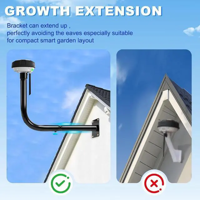 360° Steering System: RTK wall mount kit for YUKA devices features an adjustable design that optimizes the satellite reception angle in real time, and the signal acquisition efficiency is increased by 67% compared to fixed brackets! The bracket extends up to 24 inches, perfectly avoiding the obstruction of the eaves, especially suitable for compact smart garden layouts.
