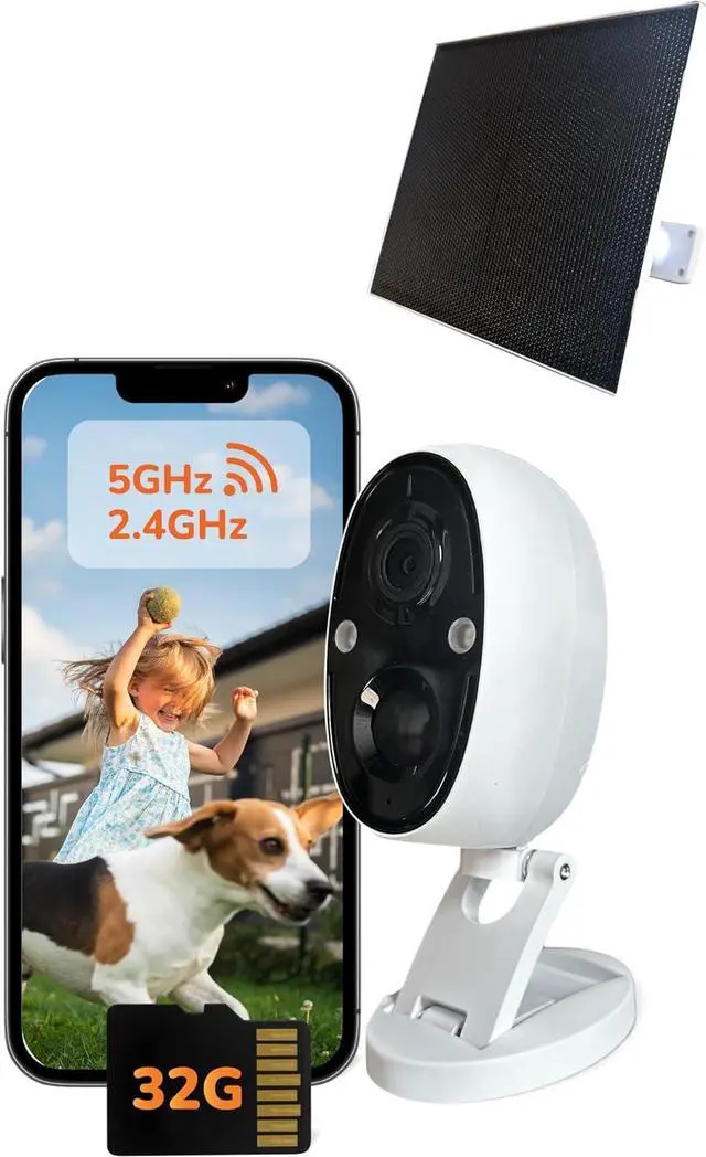 Dual-Band WiFi (2.4/5GHz) + 32GB SD Card Storage Connect seamlessly to your home network using dual-band WiFi for faster data transfer and stable streaming. Includes a 32GB microSD card for secure local storagekeeping your recordings private with no monthly fees.