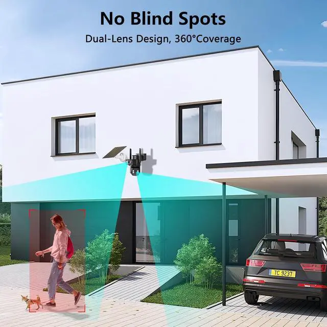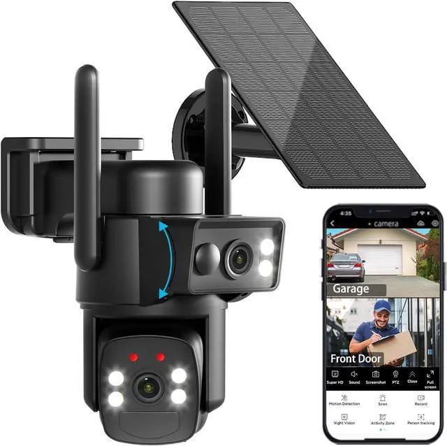 [All-Round Protection] The camera has two lenses. The spherical camera has a 360° left and right viewing angle and can move 90° up and down. The gun-shaped camera has a 110° fixed vision. The camera has dual PIR detection functions to ensure accurate detection. Nothing is missed, and with the combination of the two lenses, the safety of your property can be guaranteed.