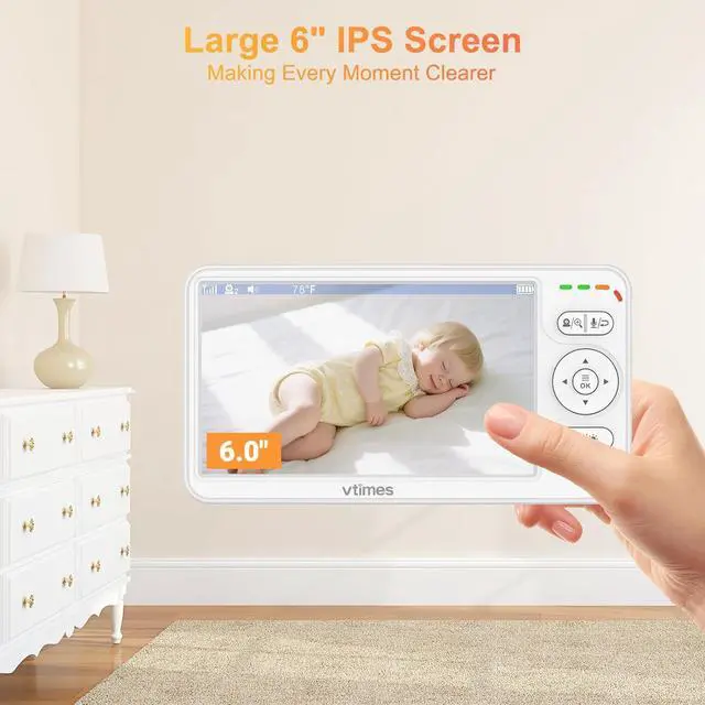 6 Ultra-Large IPS ScreenEnjoy a 6-inch ultra-large IPS screen baby monitor that offers a wider view and crystal-clear night vision image quality. Whether it's day or night, the IPS technology ensures high-quality display with excellent clarity, so you can see every detail of your baby without straining your eyes