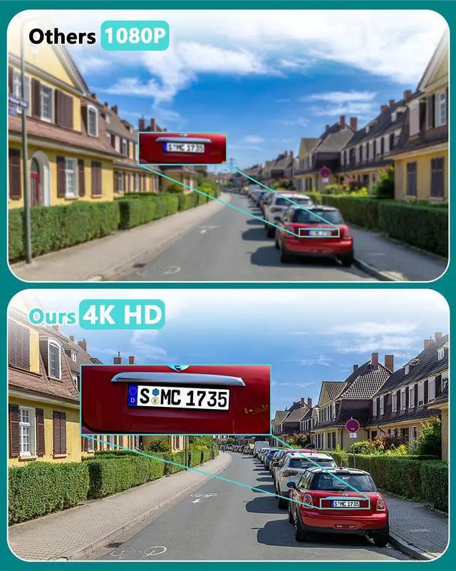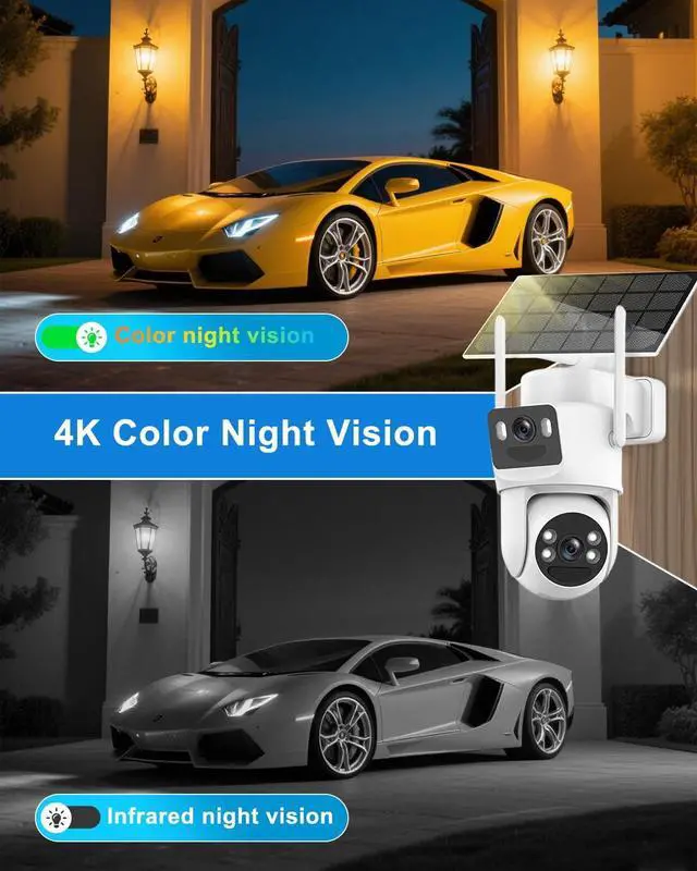 4K HD Color Night VisionWith 4K resolution, the outdoor security camera captures more crystal-clear details than traditional 1080p cameras. With advanced color night vision technology, the camera delivers vivid full-color images even in low light condition up to 33ft.