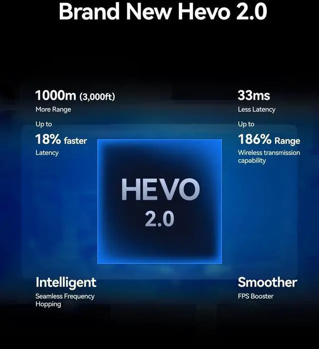 [Wireless Video Transmission Revolution & FPS Booster] - Equipped with Hollylands HEVO 2.0 technology, the COSMO C2 features Seamless Frequency Hopping for enhanced signal strength and superior anti-interference performance. The RX utilizes a cutting-edge frame rate compensation algorithm to convert 24/25/30P inputs to smoother 60P outputs.