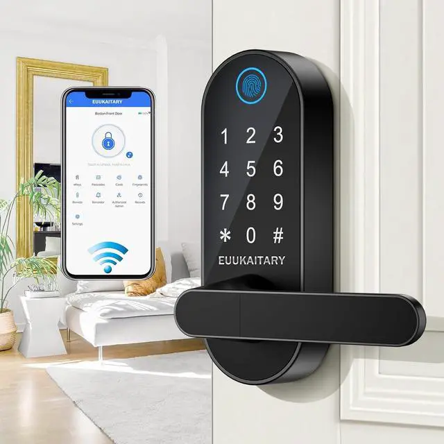 6-in-1 Keyless Entry Door Lock with Handle Unlock Your Freedom: Fingerprint, passcode, App, voice (Alexa/Google Home), card, and physical key for offering unmatched flexibility and ease. Ideal for home use, bedroom, apartments, Airbnb landlords, renters, offices
