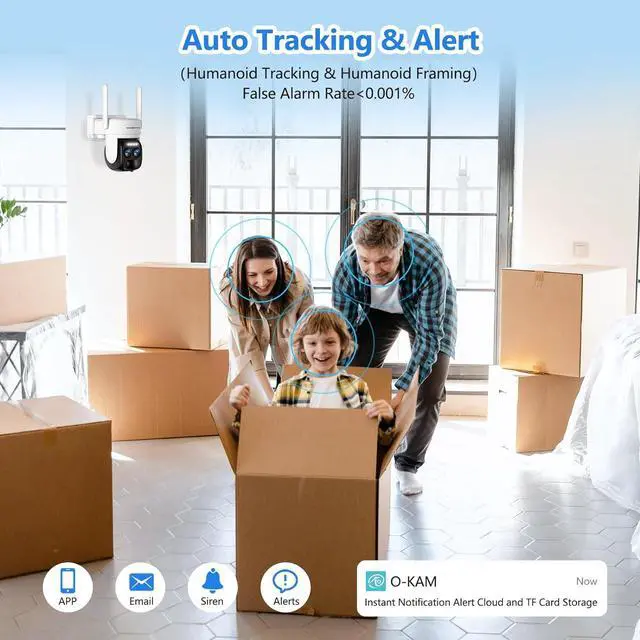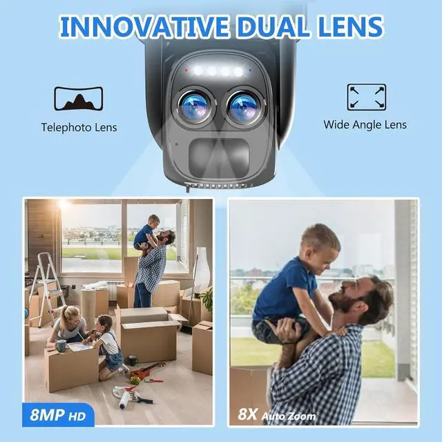 360°All-round ProtectionThe cameras for home security can 360°PTZ to protect your home and property security in all directions. The dual cameras capture any details under the field of view to protect your yard, garage, and corridors.
