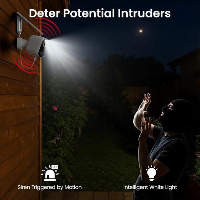See the light, hear the security: INFIYA wireless cameras for home security have dual defense of the light&siren alarm. After setting the alarm trigger conditions, the outdoor security camera can automatically spark light&sound to scare away possible intruders at night. Install the outdoor security camera at your doorstep, garage, or garden entrance to enjoy the 2-way audio security guarantee. (10m max motion detection distance; detection settings can be modified on demand)