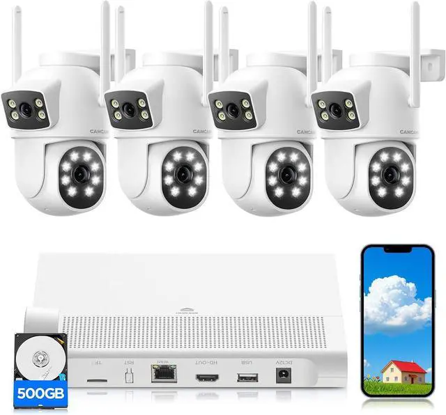 No Monthly Fee & Advance Compression Our wireless security camera outdoor is equipped with a 500GB HDD, so you can store and download any footage without any extra cost, and no need to worry about the footage being leaked. This security system adopts H.265 compression technology, which saves up to 50% of video storage space compared with H.264, providing you with longer days of footage.