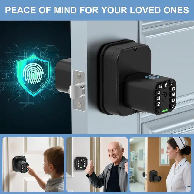 DUAL-SIDED DOOR LOCK FOR GATES & SECURE AREAS: Independently manage gates, fence entries, yard, or private spaces from both sides. Features dual keypads, fingerprint scanners, and mechanical key. Ideal for securing children, elderly family members, or sensitive zones.