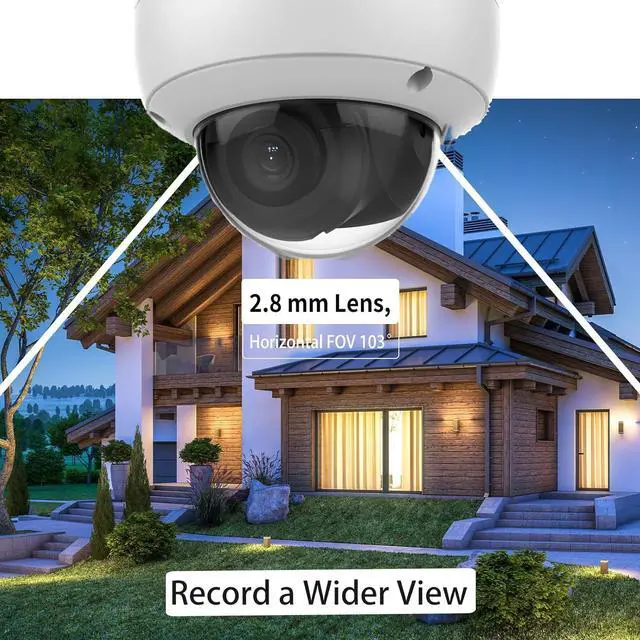 Capture sharp 4 MP high-resolution footage with a wide 122° diagonal viewing angle that covers expansive areas in clear detail. The 2.8mm lens provides optimal coverage for comprehensive monitoring of both indoor and outdoor spaces