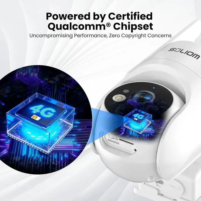Qualcomm Chip & Unlimited 4G Data Plan This 4G security camera is a versatile cellular security camera that requires no WiFi needed security camera. As a robust 4G LTE cellular security camera, it features a Qualcomm chip and includes a pre-installed SIM card with unlimited data plans from $19.9/month. Enjoy 30-day cloud trial This reliable no wifi security camera guarantees seamless recording without data limits