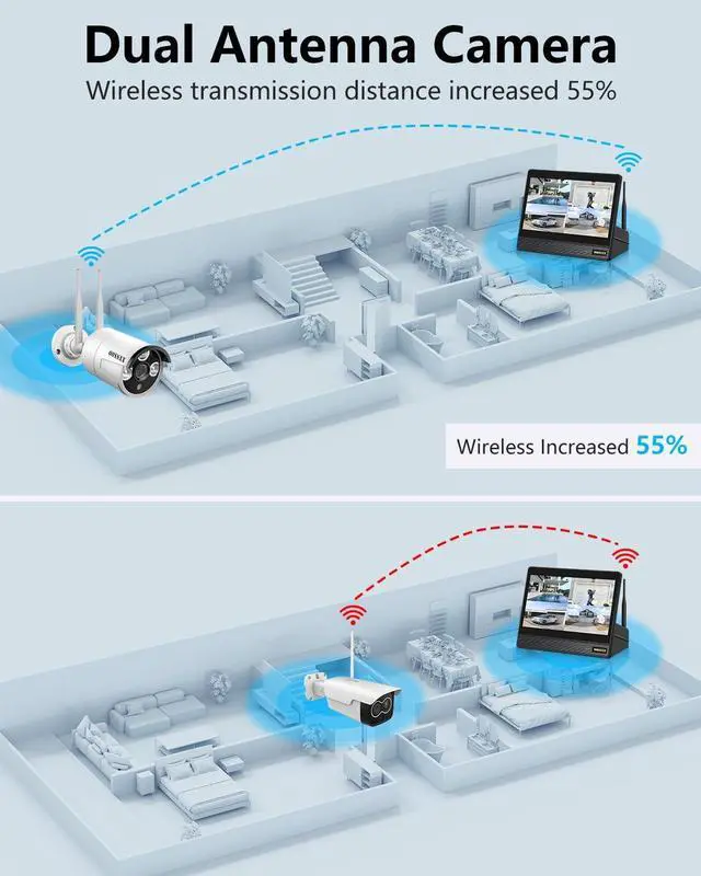 OOSSXX (HD IPS Monitor) Dual Antennas Wi-Fi Enhanced AI Human Detected Wireless Outdoor Security Camera System, Home Video Surveillance Indoor, IP67 Waterproof