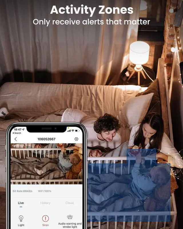 [2-way Audio & Instant Siren & Spotlight] This security cameras wireless outdoor has a built-in microphone and speaker, you can directly communicate with family, friends, and couriers through the Mubview app or "Cloudedge". Siren, Spotlight, or 2-way Talk both allow you to drive away thieves and unwanted visitors. You can share your camera access with family or friends with just one QR scan.