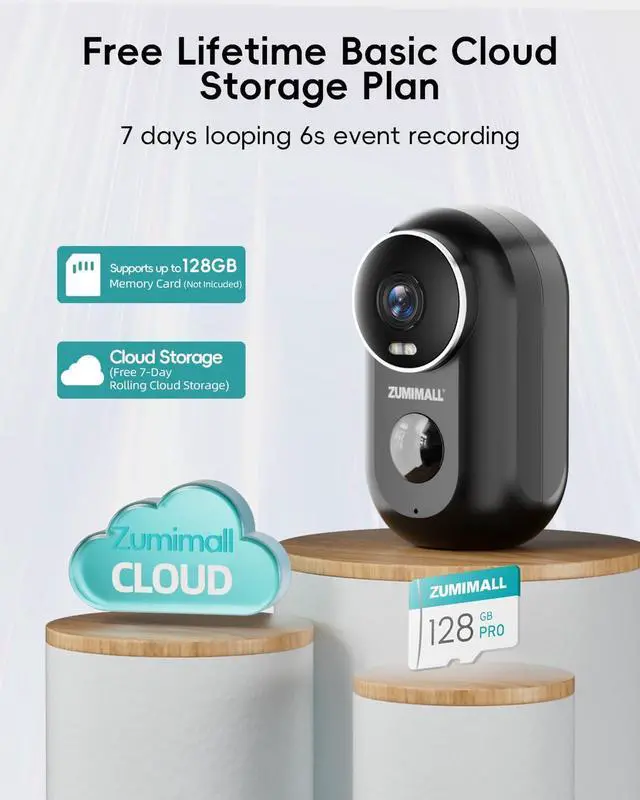 7-Day Loop Cloud Storage & Live View & Multi-People Share: Get a 7-day cloud loop recording with a 6-second video, Your privacy is safeguarded through encrypted cloud. You can also use a max 128GB Memory card (not included) for storage. Stay informed with live streaming, and share access with multiple devices so your entire family can monitor together