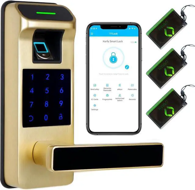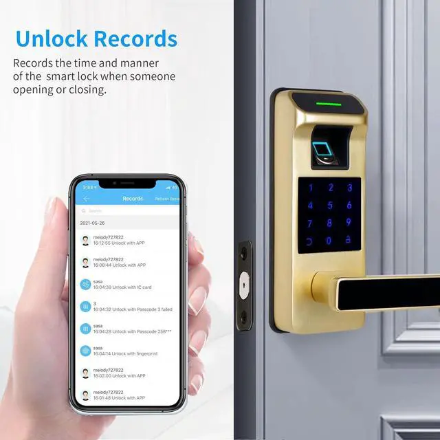 [All-in-1 Fingerprint Door Lock] APP control + Fingerprint + Passcode +IC Cards (Include 3) + Backup Keys. Work with Alexa and Google Assistant & Support Voice Control (Need to pair with gateway, sold separately)