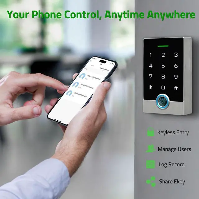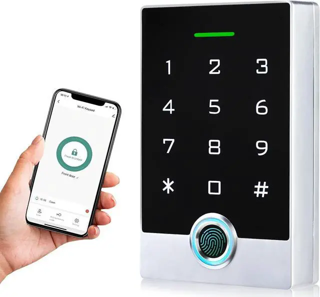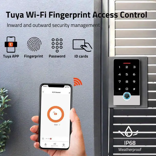 Multiple Users, Multiple Access Ways10000 users capacity. Fingerprint, swipe card or code password or TUYA APP multiple unlocking methods to open the door. Keypad come with 5PCS ID keyfobs, compatible with all electric locks. Smart phone APP wireless control keypad, management users, more convenient and quick.
