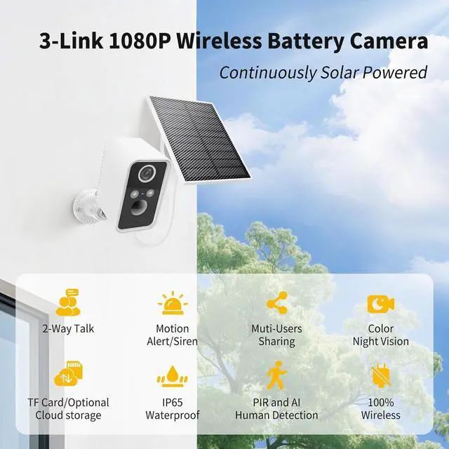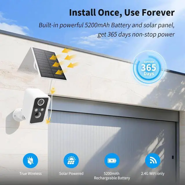 [Solar Panel] Battery powered with solar panel, this camera stays charged continuously. Enjoy hassle-free, uninterrupted monitoring