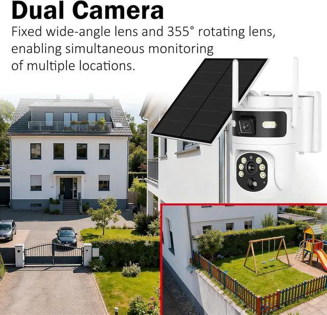 FHD 2K Dual Lens & 360° PTZ Control with 10x Zoom With a 4MP high-performance ISP sensor, this cellular camera delivers clear 2K video and supports 10x variable zoom. The dual lens design offers a 110° wide angle, while the PTZ function rotates 355° horizontally and 90° vertically for full coverage. Control remotely via app (Android & iOS), eliminating blind spots around your property.