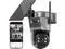 Dual Lens & 360° Viewing Our 6MP outdoor security camera are designed with dual lenses: Panoramic camera + Tracking camera two in one. Panoramic camera fixedly monitors important areas, such as the front door. Tracking camera supports 355°horizontal rotation and 90°vertical rotation, which can be easily controlled through the app, capturing a wider range of areas and record clear videos without any blind spots to protect your family and property.