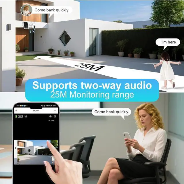 360°Viewing with PIR Motion DetectionAll-around viewing with pan and tilt. Our 4g lte cellular security camera features an advanced PIR motion sensor that quickly and accurately detects any movement, sending instant alarm notifications to your phone (You can adjust the sensitivity of this function in the APP to match your needs). Additionally, the cellular camera is equipped with a two-way talk function that allows you to communicate through the device anytime, anywhere.