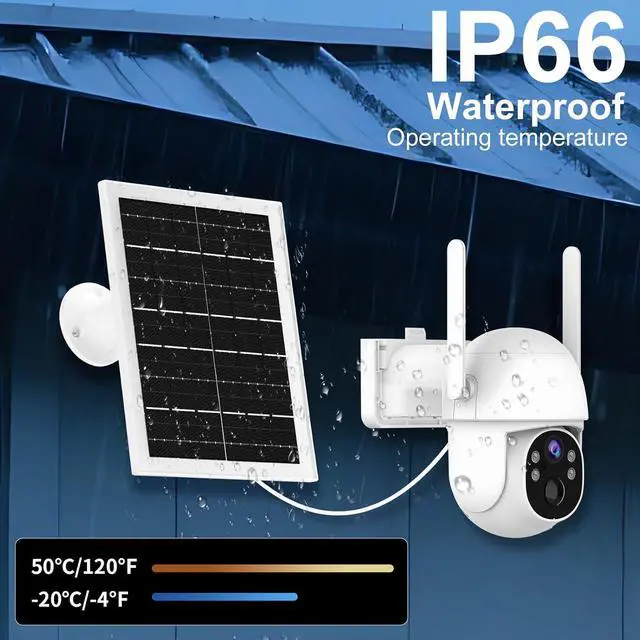 Superb Waterproof Effect & Environmental Resilience: With IP66 waterproof level, this cellular camera outdoor gives you peace of mind knowing its tough enough for any weather conditions, this outdoor camera no wifi needed works well within -4~120.