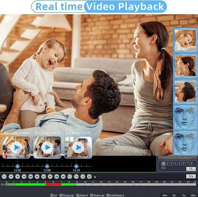 AI Human Detection & PlaybackWith the help of advanced recognition algorithms, It will send notifications via Mobile APP in real time once detect abnormal actions. Compared with the traditonal PIR or detection, AI Human Detection can avoid 99% False Alarm. This ip security systems allow you to playback video anytime/anywhere on your Phone App or TV monitor system.