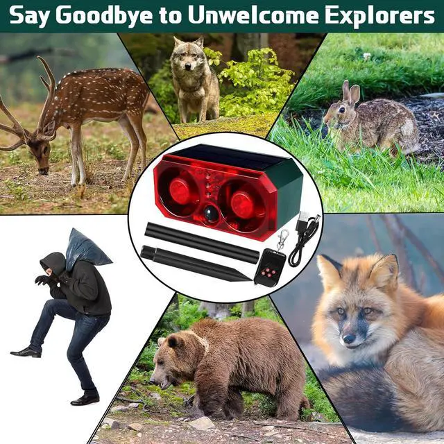 Solar and USB Powered: Powered by solar energy with USB backup, this outdoor motion sensor alarm activates when animals approach, deterring deer, wolves, and rabbits without battery changes. Keeps gardens, farms, and driveways secure day and night