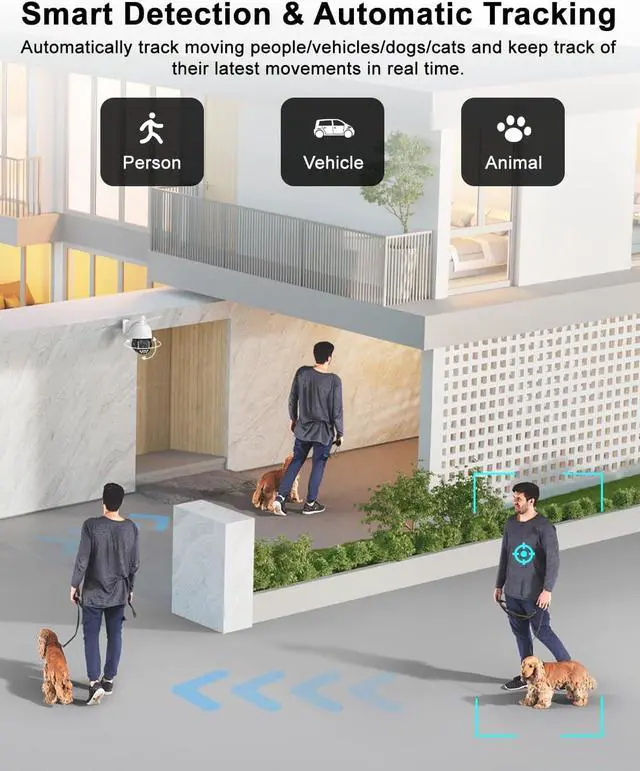 Smart Detection & Human Tracking: This 4k security camera outdoor is equipped with a third-generation AI recognition chip that can distinguish between people, vehicles, and pets. When a person is detected, it automatically tracks their movement path, keeping them centered in the frame. You can also customize detection zones, sensitivity, and schedules to filter out 98% of false alarms effectively . Alarm notifications are sent in real-time to your phone, allowing you to quickly view video playback and understand the actual threat.