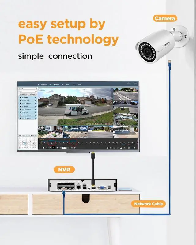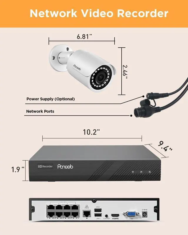 Plug and Play: Benefitted by PoE technology, Panoob PoE NVR system transmits video, audio and power combined through one cat5e network cable, which can provide you an extremely easy way for project installation, it is perfect for beginners and DIY enthusiasts to build their own video surveillance systems.